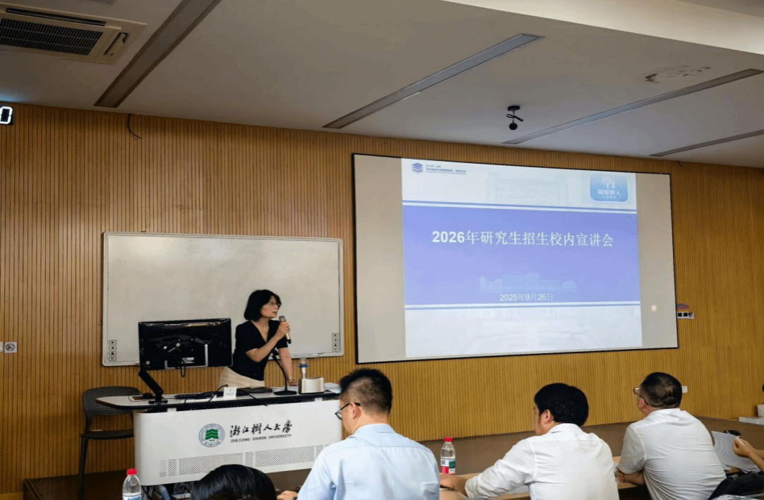 2025年9月26日下午,浙江树人学院研究生处在B1-207教室举办2026年研究生招生校内宣讲会。会议由学科处、研究生处处长史丽云主持,公共管理学院副院长宋海朋进行(MPA)学位点宣讲。