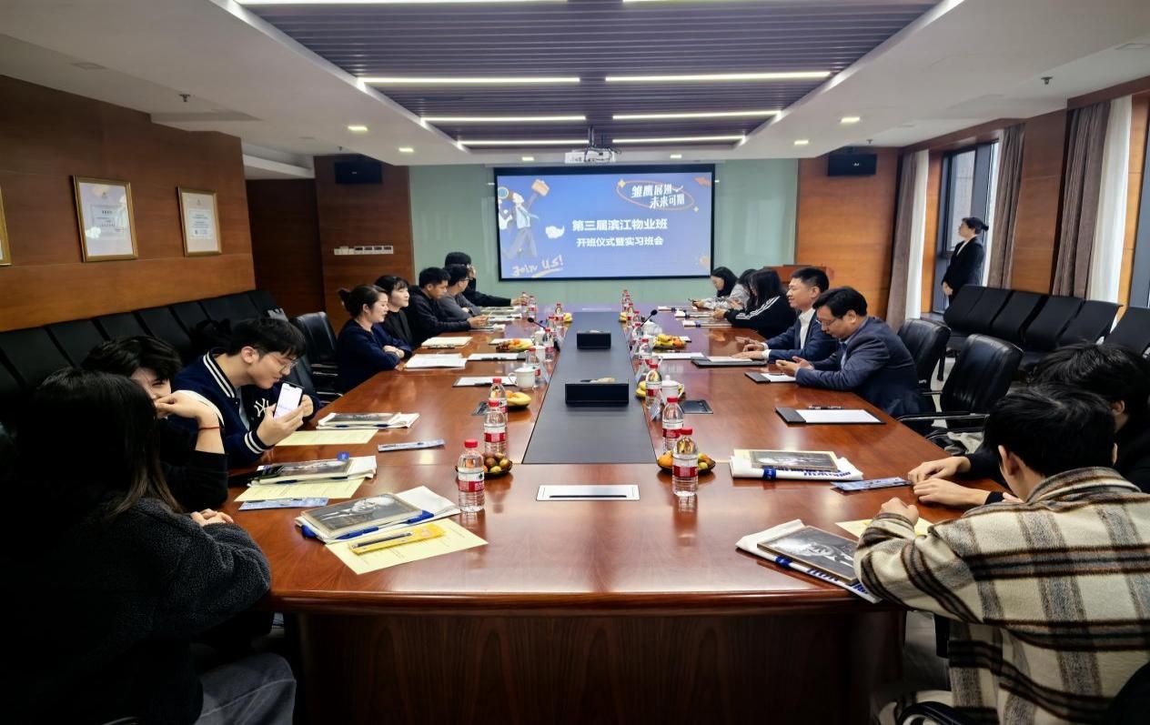 11月8日,正值浙江树人学院校庆日,公共管理学院在滨江物业集团总部举行第三届“滨江班”开班仪式暨首次实习班会。公共管理学院党委书记汪群龙,党委副书记、副院长叶智校,物业管理系教师代表、学院外事办主任刘济浔,宸阳书院学生发展中心主任、滨江班班主任王善强,滨江物业集团人事总监沈岚、人事经理沙文雅以及第三届滨江物业班部分同学代表共同出席。仪式由滨江物业班企业方班主任朱涵敏主持。